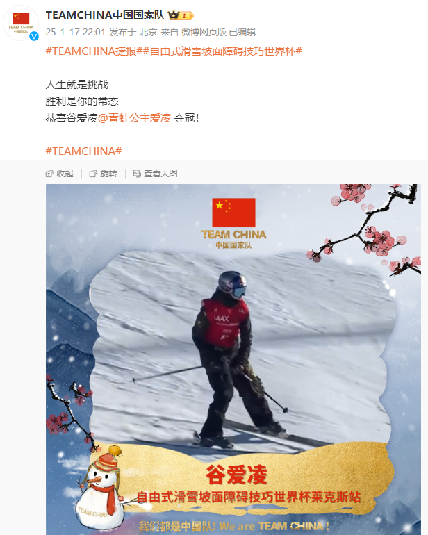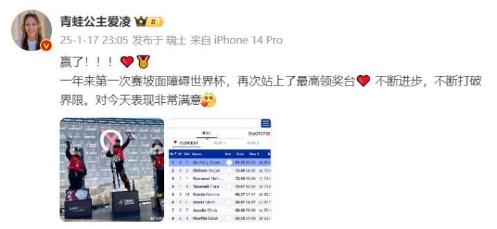 谷爱凌夺冠之后,她本东说念主亦然难掩振奋之情,这位体坛巨星晒出成绩单与领奖相片,并示意对我方的进展相配自得,不休跳跃,不休约略边界,再次站上最高领奖台!