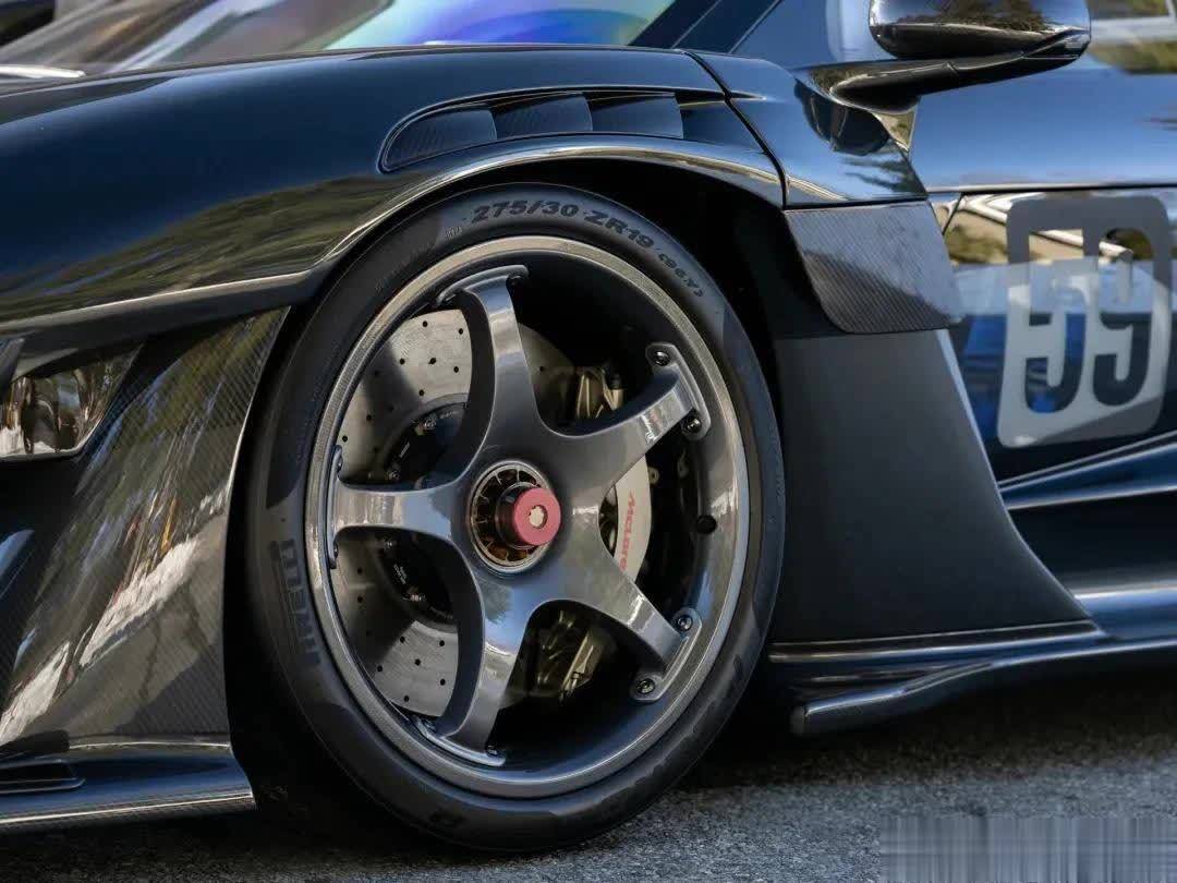 它的非常之处有:车身空气能源学套件强化、受勒芒冠军F1 GTR涂装启发的双色漆面、灰颜色流露碳纤维部件、五辐式中央锁止铸造碳纤维轮毂,以及带有红色迈凯伦字样的金色制动卡钳。