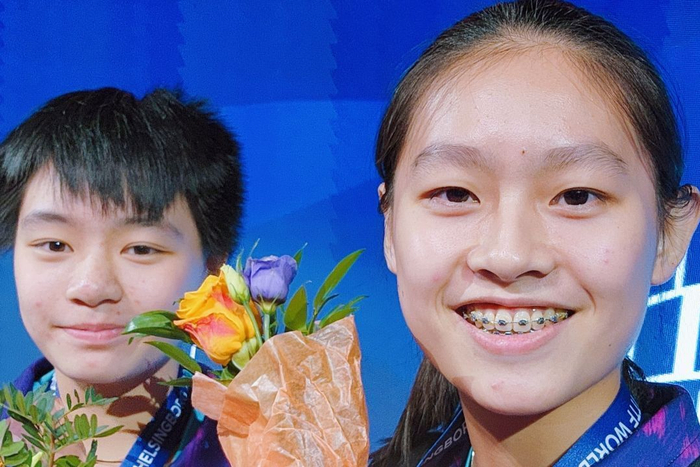 覃予萱和纵歌曼夺得U19女子双打金牌。