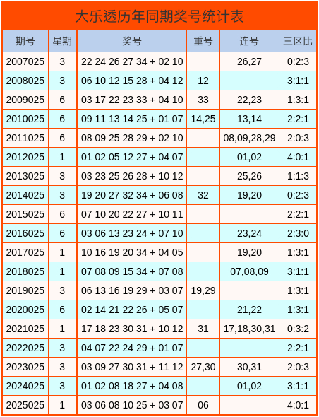 大乐透历史同时奖号统计图