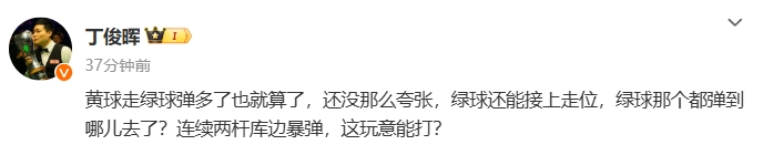 点击输入图片边幅(最多30字)不外,关于此次的输球,丁俊晖额外大怒。丁俊晖于半夜23点多在社媒发移动态,炮轰苏格兰公开赛主理方:“从来没打过如斯像屎相似的球桌,库边的弹力跟弹簧相似,这种桌子哪儿来的控球,一帮业余装球桌的把一坨屎装起来给劳动选手去打,好真理称我方是劳动赛事。”随后不久,丁俊晖再次大怒发出第二条炮震荡态:“黄球走绿球弹多了也就算了,还没那么夸张,绿球还能接上走位,绿球阿谁齐弹到哪儿去了?连结两杆库边暴弹,这玩意能打?”斯诺克领路一向被称之为闻东说念主领路,大概让选手关于赛事如斯发怒,可见苏格兰赛是果然让丁俊晖额外不沸腾。对此,你们奈何看?