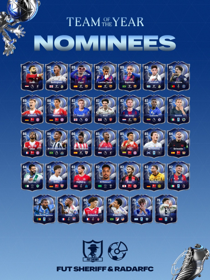 EAFC26年度蓝候选: 27名时尚含梅罗, 亚马尔拉菲萨拉赫被列为中场体育录像/图片