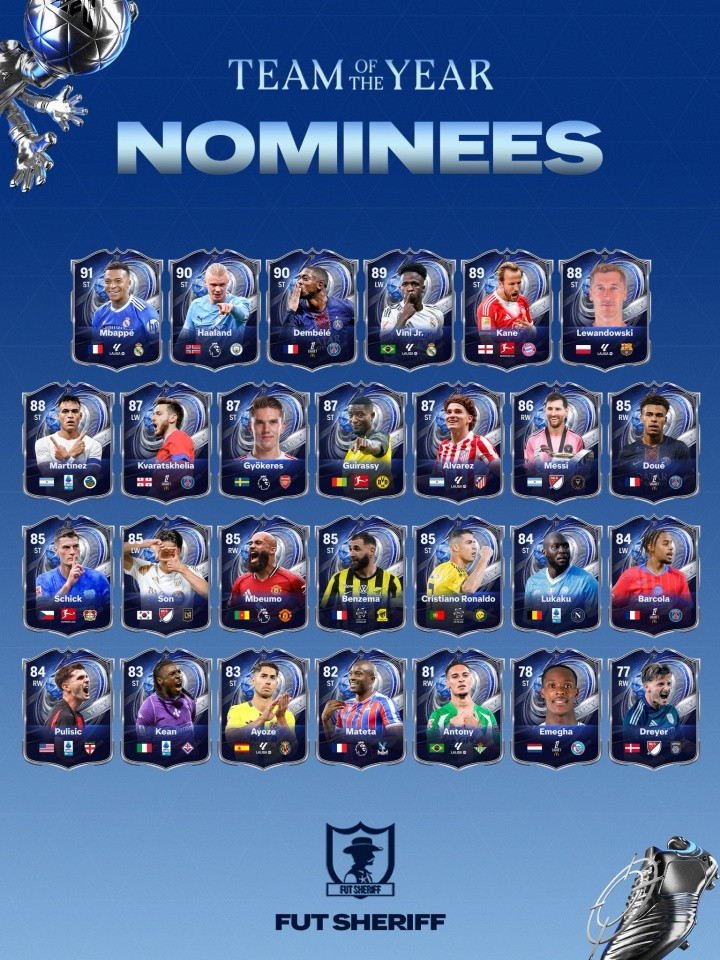 直播吧01月07日讯游戏博主FutSheriff线路了足球游戏EAFC26的男足年度最好威望(游戏圈常称“年度蓝”)的候选名单。