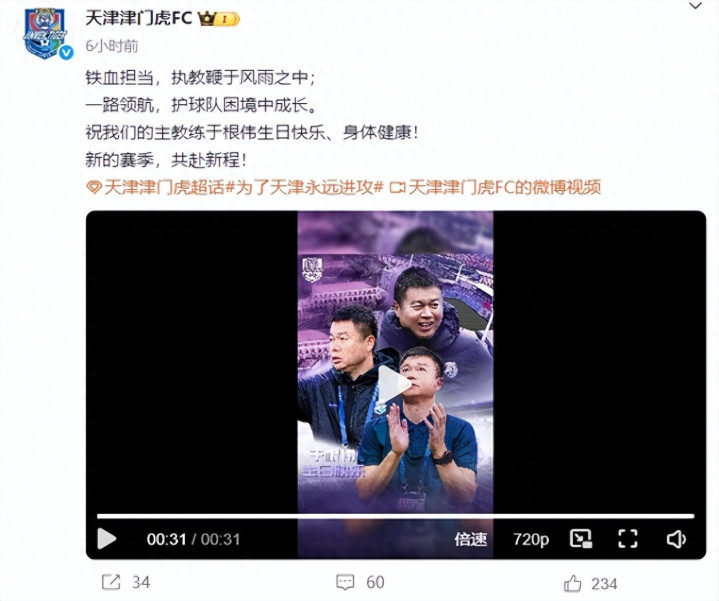 寿辰这一天,于指点最主要的元气心灵,依然照旧投在了津门虎队身上。