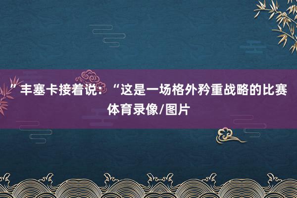 ”丰塞卡接着说:“这是一场格外矜重战略的比赛体育录像/图片